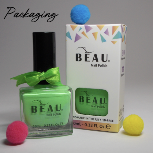Apply in 2 even coats being sure to cap the edge on each layer. Apply a BEAU Polish base coat and top coat for a longer lasting wear.