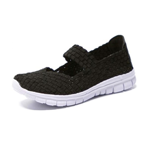 Comfortable and lightweight Mary Jane style slip on shoes featuring a breathable woven elastic upper that stretches to fit your feet.