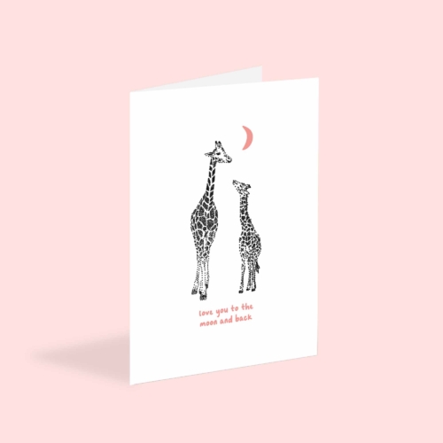 A cute Giraffe Mother’s Day Card which is bound to make your Mum (or Mother figure in your life) smile! The card reads ‘love you to the moon and back’.