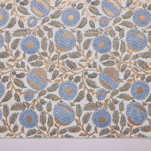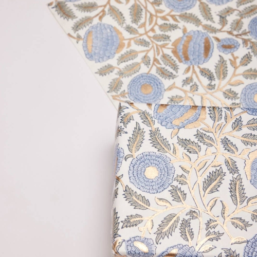 Our beautiful range of premium gift wrap is hand block printed on ivory cotton paper using 2 or more colours. A separate wooden block is used for each colour application. Symmetry forms the core of the design and pattern repeats must be perfectly balanced. The colours are stamped one at a time and a high level of skill and precision is required to produce every sheet. The result is a truly stunning sheet of paper which is guaranteed to ‘wow’!