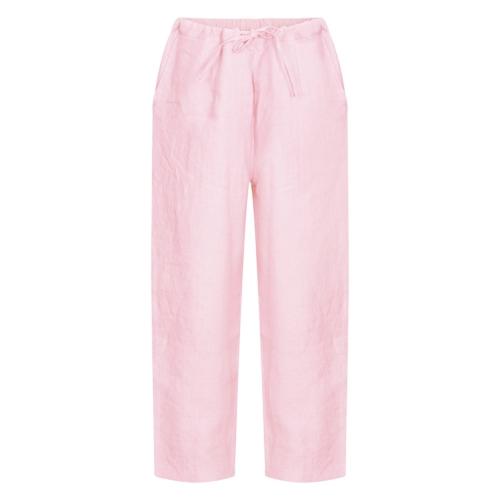 Description Our best selling summer trouser is sure to be a favourite wardrobe staple worn with a gorgeous linen top. Easy fit, flat fronted trouser has darts at the front and back along with two deep side pockets and a soft elastic back waist. The front of the trouser has a neat drawstring. 100% pure soft washed linen