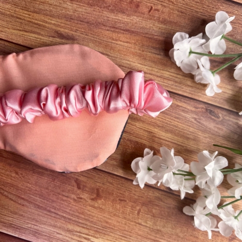 Pretty and functional, our sleepmasks are made with soft avio cotton, with a polycotton lining and a scrunched satin covering on the strap. The pretty pattern designs cover the front of the mask, with a complimentary colour on the inside, matching the strap satin. The mask sits comfortably over the eyes, with padding to ensure a soft firmness and more light-blocking.