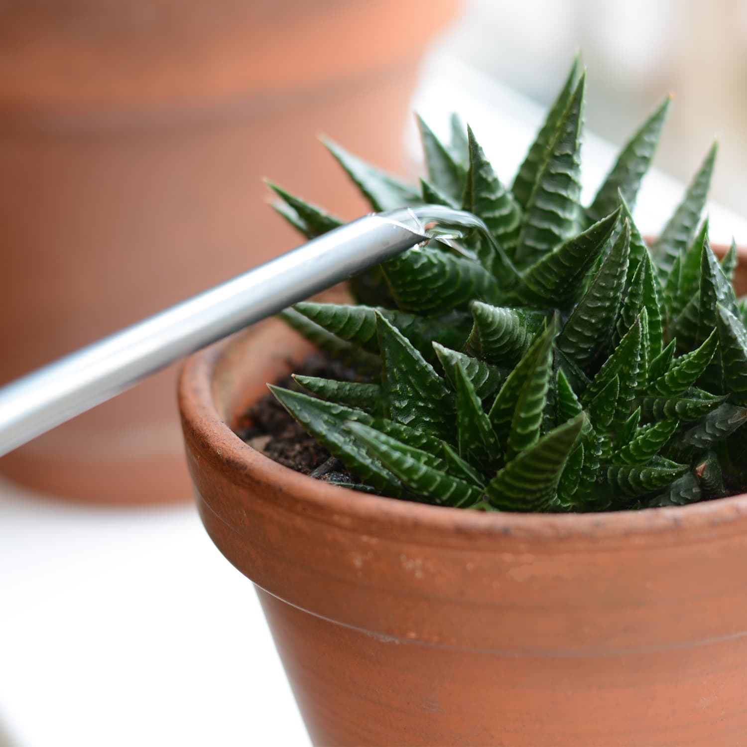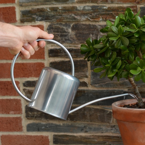 You can position the long spout right where water or liquid fertilizer is needed, reaching up to hanging pots or poking down to the soil at the base of a bushy plant.