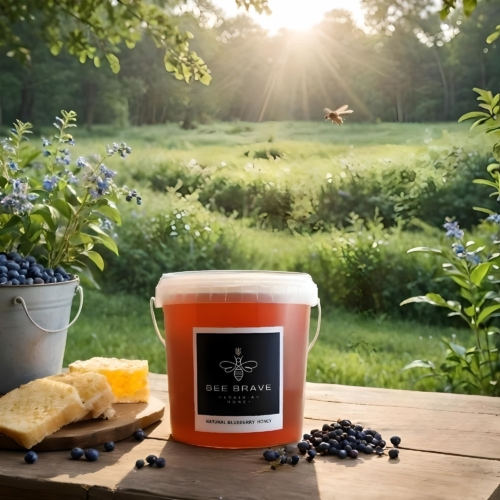 Bucket of Bee-Brave Natural Raw Unprocessed Blueberry HoneyModerate taste, runny unprocessed honey from the Central Ukraine area.Rich taste, Gives immune support.