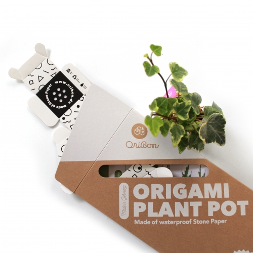 You can’t find our unique DIY Origami plant pot anywhere. It’s made of eco friendly Stone Paper – waterproof foldable product, made in Germany. Much like with Origami no glue is needed, just folding.