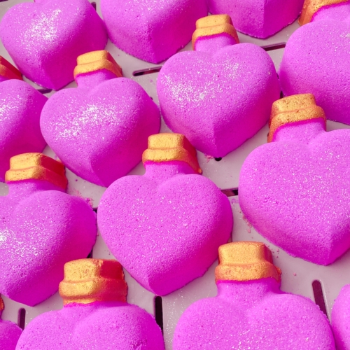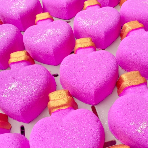 Relax this Valentines season with our Love Potion Bath Bomb scented with Snow Fairie! Case of 10 bath bombs. Vegan and cruelty-free bath bomb.Product information:Suitable for sensitive skin, this bath bomb should be used externally only – just drop it into your full bath tub and enjoy!Approx weight: Vegan, cruelty free and packaged in 100% biodegradable packaging.Ingredients: Sodium Bicarbonate, Citric Acid, Potassium Bitartrate, Prunus Armeniaca Kernel Oil, CI45100, Parfum. Allergens: Alpha-Isomethyl Ionone.Prolong the life of your bath bomb by storing away from moisture.