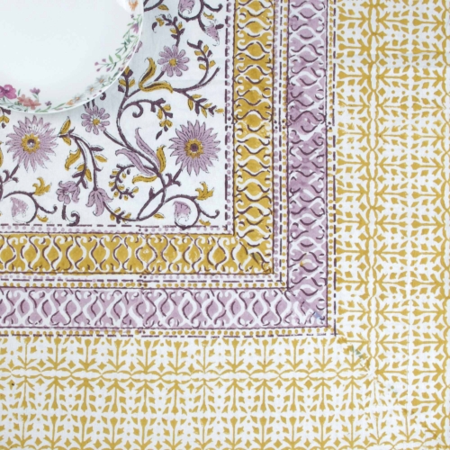 10 Seater Block Printed Rectangular Tablecloth – Purple Floral Jaal