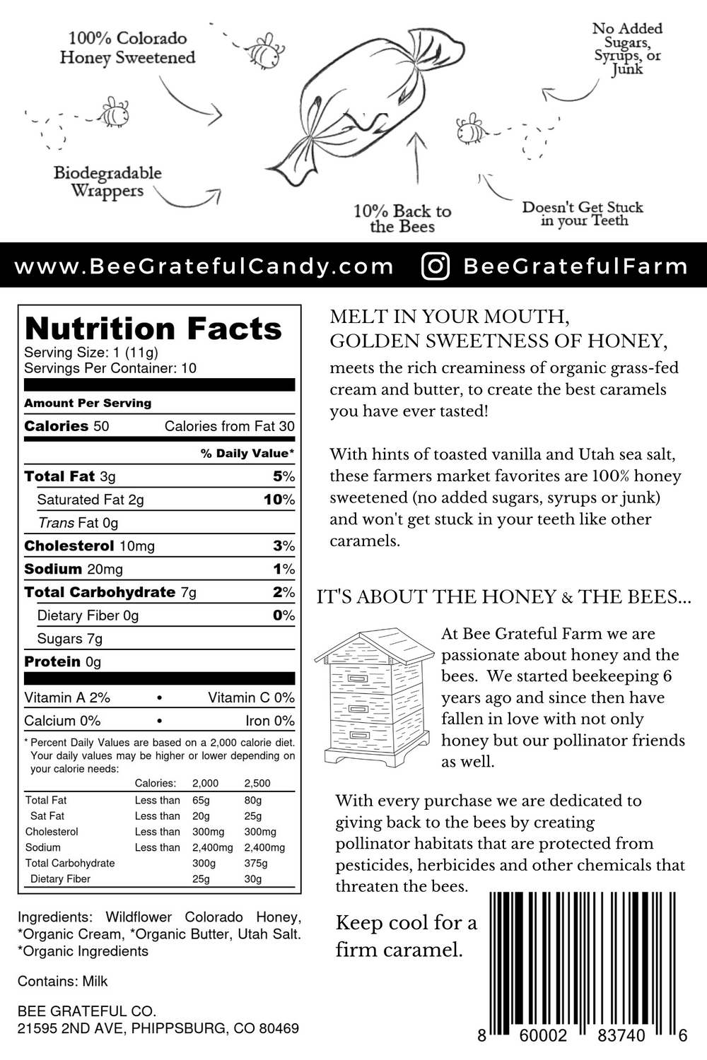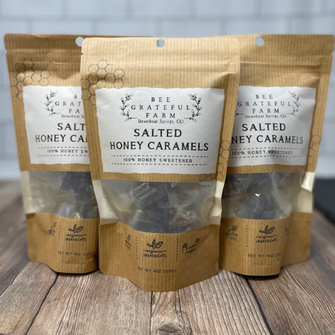 A farmers market favorite, freshly made with local honey, our extra creamy caramels are infused with pink salts harvested from an ancient ocean in Utah.