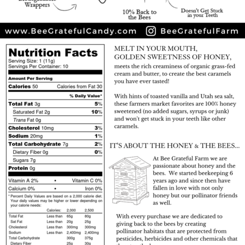 Experience the harmonious flavors of Pink Sea Salt and sweet golden honey. These decadent caramels are 100% honey sweetened (no added sugars, syrups or junk) and won’t stick in your teeth. Each bite melts in your mouth leaving a smooth and creamy experience of pure honey sweetened caramels.