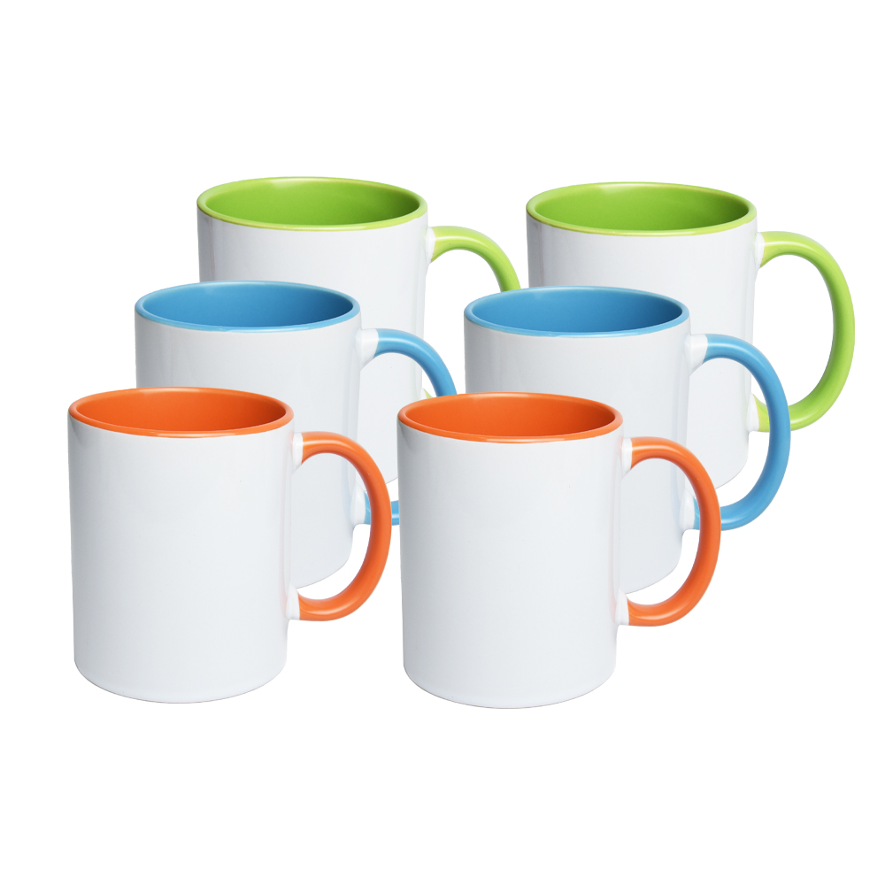 【Package included】 Ceramic Sublimation Coffee Mugs MIX COLOURS,blue, orange and green ,With Brown Mail Order Box.