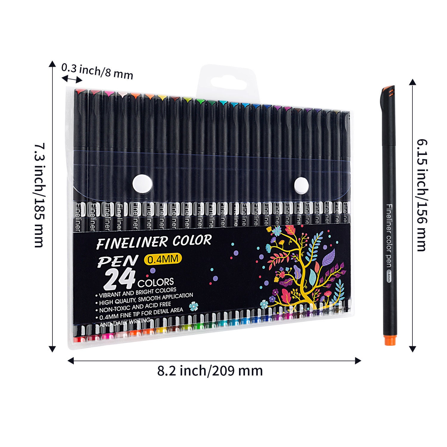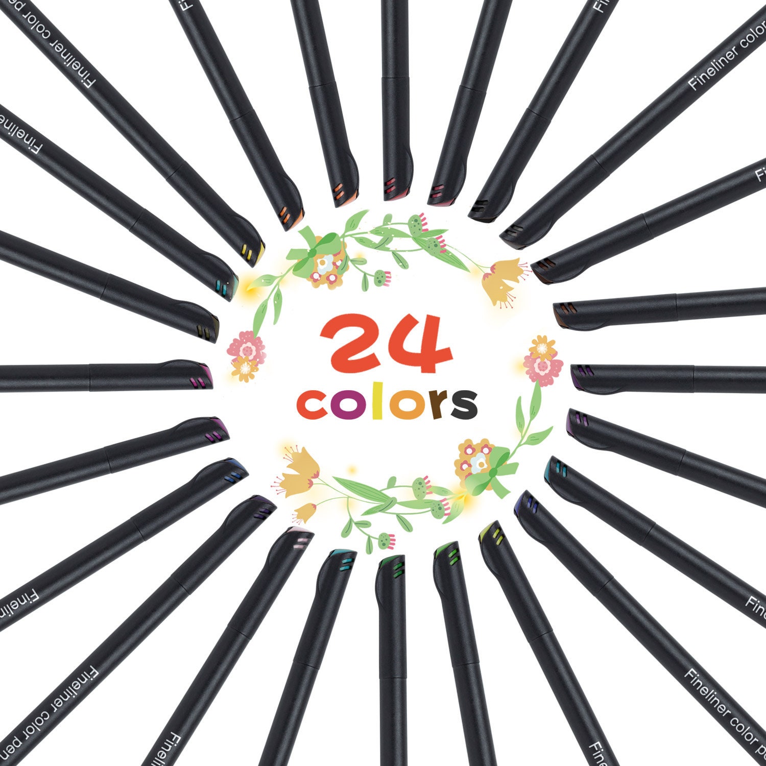 24 Color Fineliner Pens Set, Colored Sketch Writing Drawing Pens for Journal Planner Note Taking and Coloring Book, Art Crafts Scrapbooks