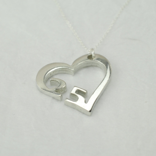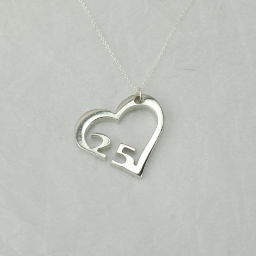 Surprise her this anniversary with a cute new heart necklace. Our anniversary heart pendant is a new design featuring the year of your anniversary. This pendant is 28mm x 26mm and comes on an 18” sterling silver chain.