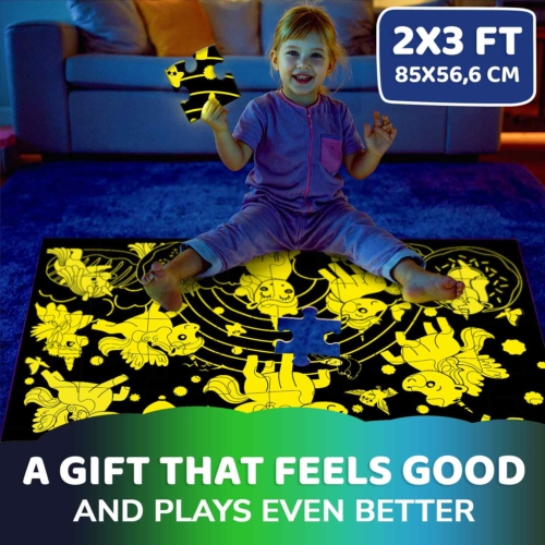 Challenging floor jigsaw puzzles for kids’ development & play by QUOKKA. Giant Floor Puzzle Magical Fantasy Unicorn consists of 48 large pieces. With these puzzle toys for kids, you get: 🦄 48 large, easy-to-handle puzzle pieces; 🌚 Magical glow-in-the-dark feature; 🎁 Premium gift-ready box.This 2×3 FT giant floor puzzle features 48 large pieces with a Fantasy Unicorn scene that glows in the dark! Designed for kids ages 4-8, it combines fun and learning. Size 33 x 22 inches. Designed in the U.S.A. by Adducate. Encourages hand-eye coordination, fine motor skills, memory skills, and cognitive development.