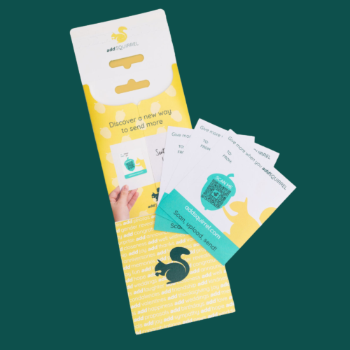 Our innovative addSQUIRREL smart QR stickers allow your customers to easily add a video, photo or voice note to any card or gift allowing them to share unique moments in a memorable way.