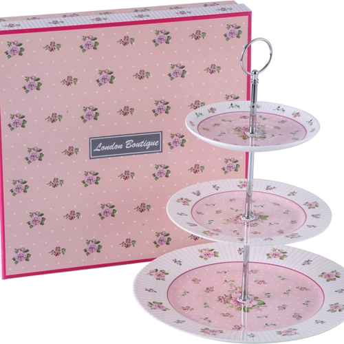 Brand: London BoutiqueColor: PinkFeatures: Porcelain cake plate stand Bottom Plate: 26cm wide, Top Plate: 19cm wide, Height: 22cm High Quality White Porcelain China with Victoria Style Flower Same flower design of gift box Silver Colour metal stand, not plastic Binding: Kitchen & HomePublisher: London BoutiqueRelease Date: 27-03-2018Details: this classic cake stand perfect for use all year round as a delightful table centrepiece for serving afternoon tea, capable of holding a veritable feast of sandwiches, cakes, scones, canapes and other delicious goodies. perfect gift ideasEAN: 5060419834653Package Dimensions: 12.8 x 12.1 x 2.6 inches