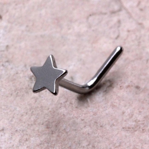 316L Stainless Steel Star L Bend Nose Ring• 316L Stainless Steel L Bend Nose Ring• Star shape top• Thickness : 20GA | 0.8mm• Length/Height (from bended point to bottom of CZ) : 6.5mm• Top Size : 3.5mm• Material : 316L Stainless Steel