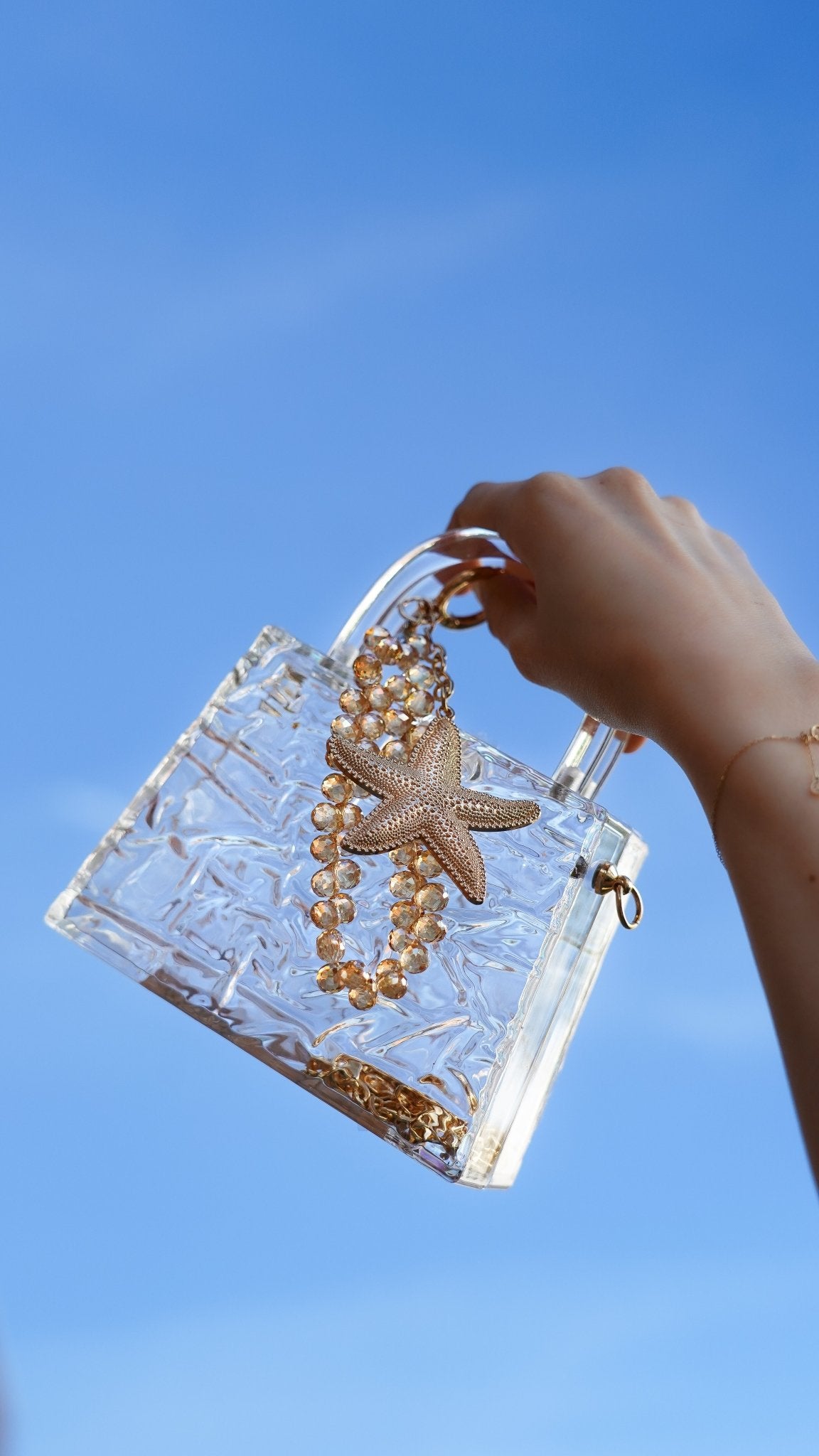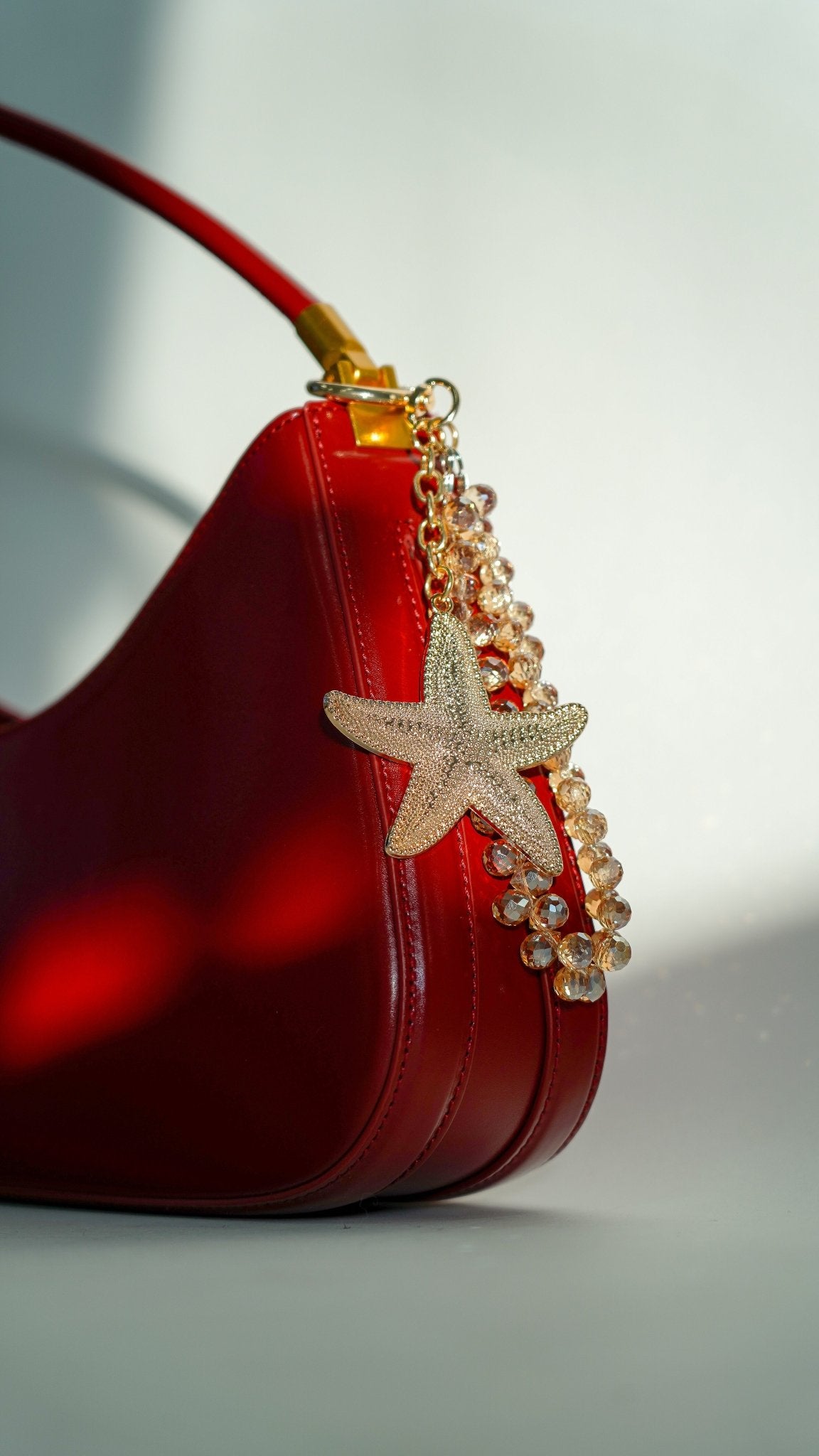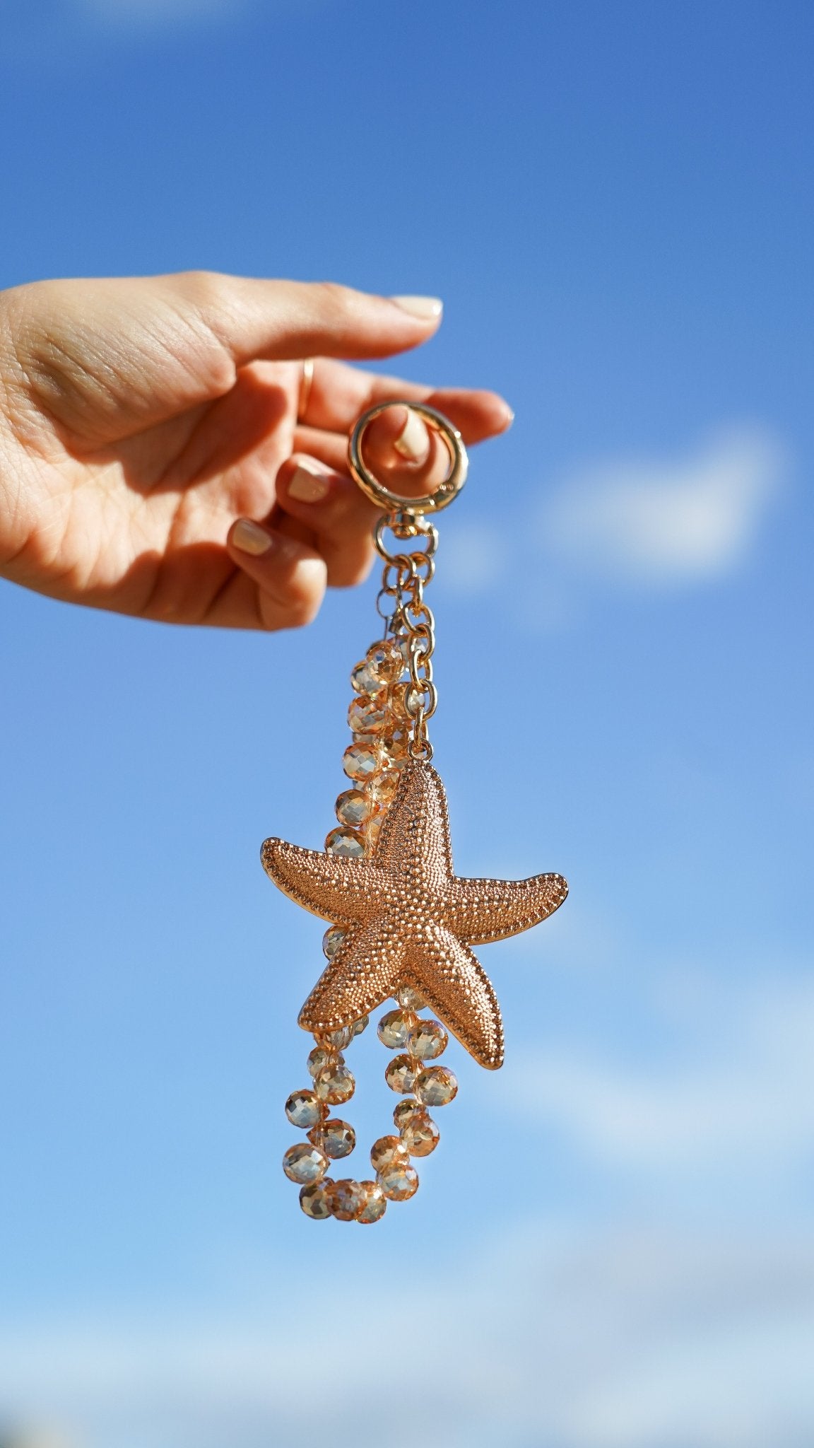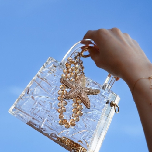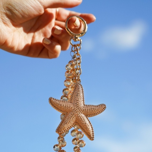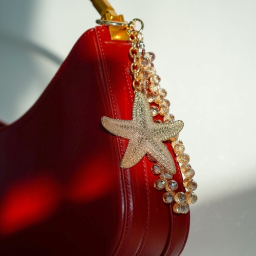 This chic bag charm features a gold-tone starfish adorned with sparkling rhinestones, adding a touch of coastal elegance to your favorite handbag or tote. Designed for versatility and durability, it’s the perfect way to personalize your bag with a splash of ocean-inspired glamour. Whether you’re heading to the beach or styling your everyday look, this dazzling charm is a must-have accessory.