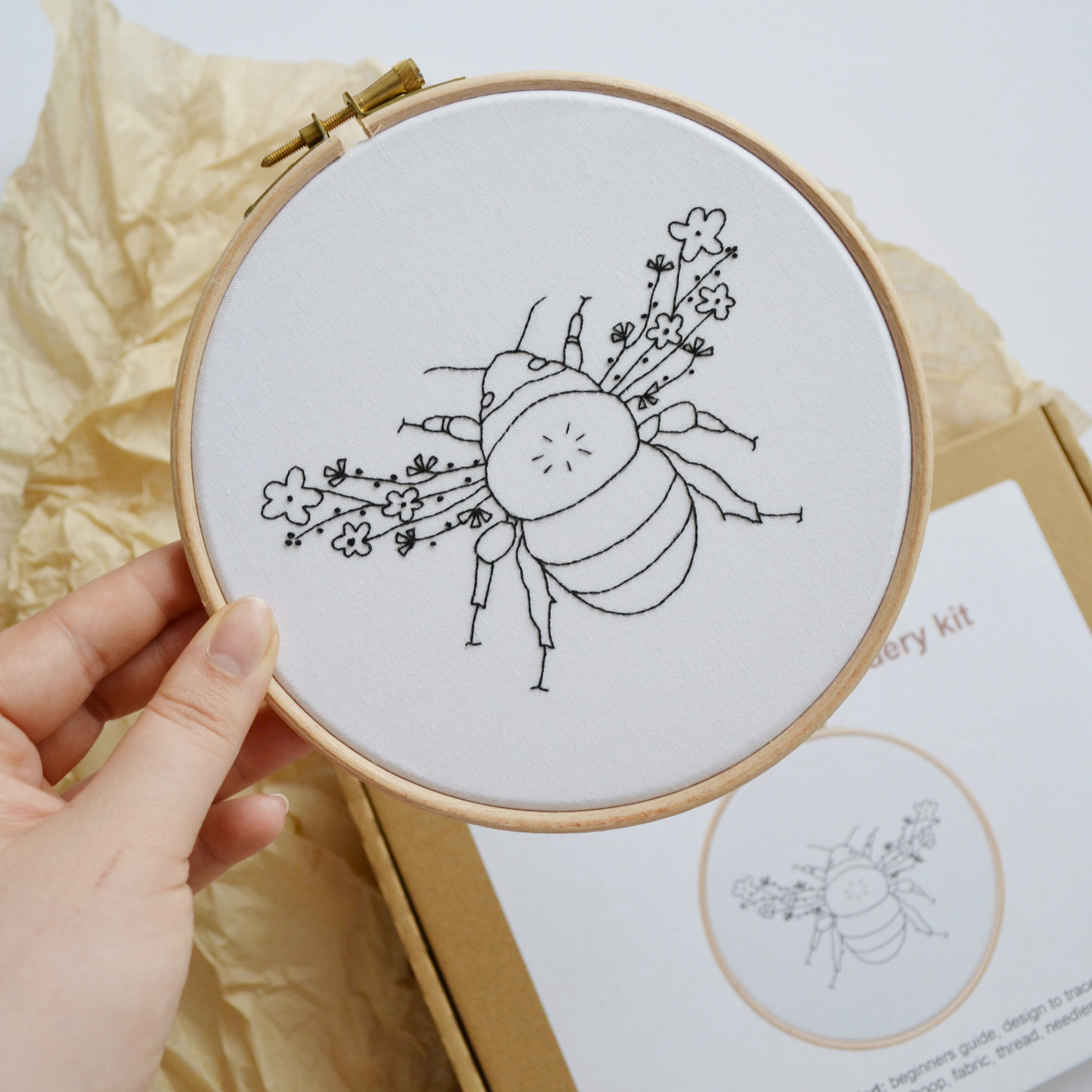 Learn to embroider this beautiful embroidery hoop with a beginner friendly DIY kit.