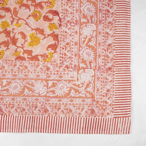Block printed 100 % cotton table cloth feature a wonderful floral design with a nice border.