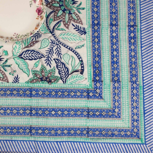 6 Seater Block Printed Rectangular Tablecloth – Pista Green