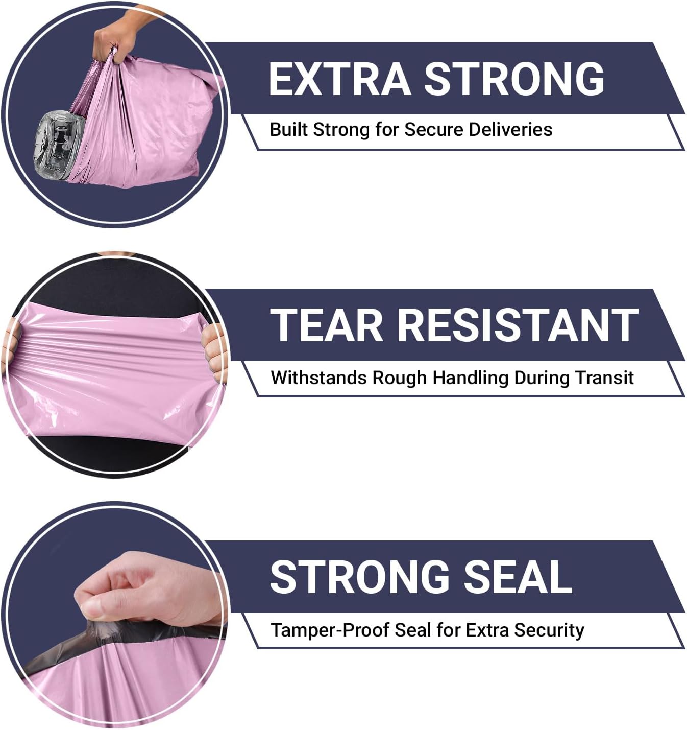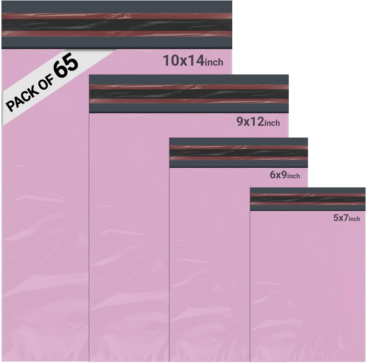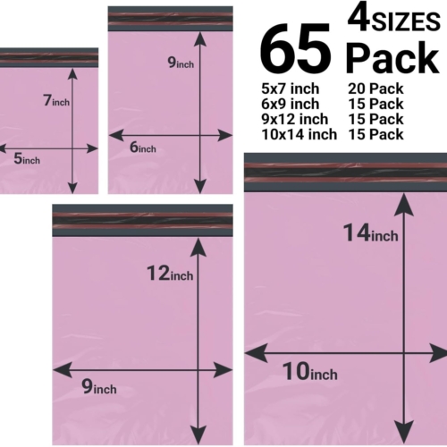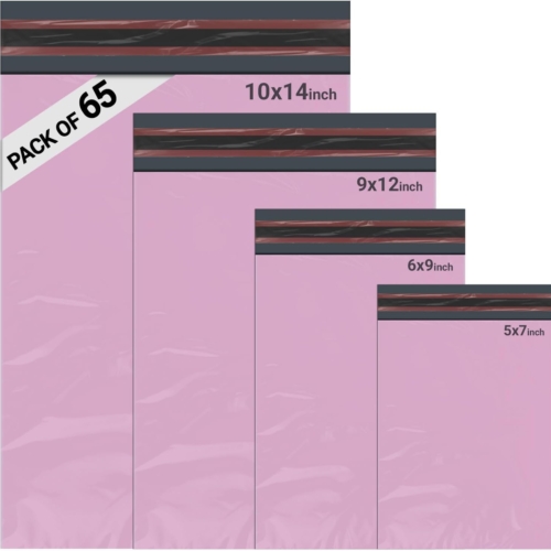 65 Mixed Parcel Bags Baby Pink, Mailer Bags Tamper-Proof Strong Postal Packaging Bags for Shipping, Mailing & Delivery, 4 Sizes Small to Large Bags, 15 Each