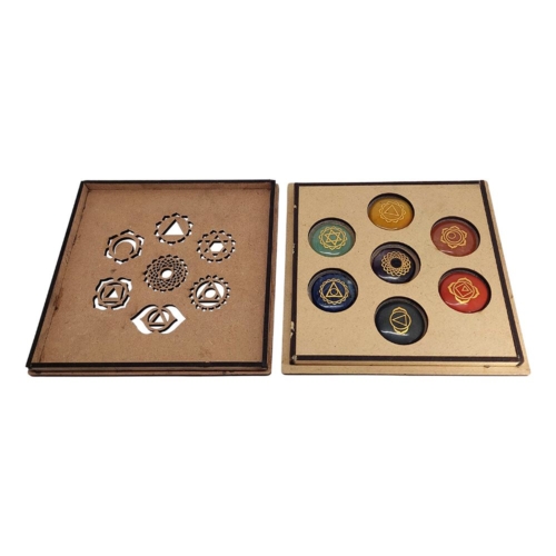 This 7 Chakra Stone Set with Assorted Wooden Case Design, Round Stones is used to healing and balance all the 7 chakras in your body. Perfect for your spiritual or healing practice, good for health, and wealth, helping you on your spiritual journey and a great addition to any crystal enthusiast’s collection. Each crystal is charged with positive Reiki energy. All 7 Chakra Stones are natural, and each of them will vary in different colours, shapes and veins from lot to lot. Each spiritual healing stone has a specific colour and psychic vibration, emitting positive energy to attune and cleanse your aura. Wherever you are and feeling a little unbalanced the Stone Set was designed to be portable so that you can alight your chakras, harmonize your life, meditate, practice yoga, crystal decor, or balance your workspace. Perfect for beginners or practitioners. Dimensions: 16.5 x 16.5 x 16.5cm.