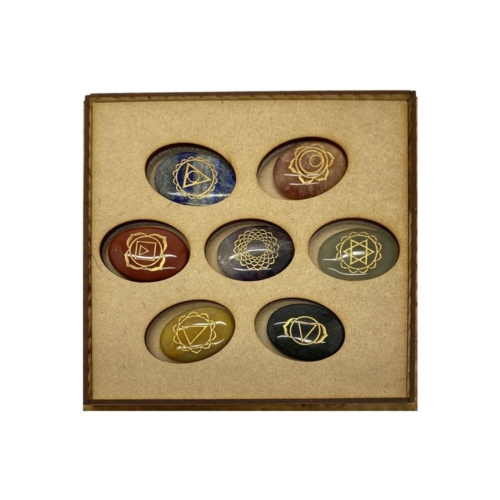 This 7 Chakra Stone Set with Assorted Wooden Case Design, Round Stones is used to healing and balance all the 7 chakras in your body. Perfect for your spiritual or healing practice, good for health, and wealth, helping you on your spiritual journey and a great addition to any crystal enthusiast’s collection. Each crystal is charged with positive Reiki energy. All 7 Chakra Stones are natural, and each of them will vary in different colours, shapes and veins from lot to lot. Each spiritual healing stone has a specific colour and psychic vibration, emitting positive energy to attune and cleanse your aura. Wherever you are and feeling a little unbalanced the Stone Set was designed to be portable so that you can alight your chakras, harmonize your life, meditate, practice yoga, crystal decor, or balance your workspace. Perfect for beginners or practitioners. Dimensions: 16.5 x 16.5 x 16.5cm.