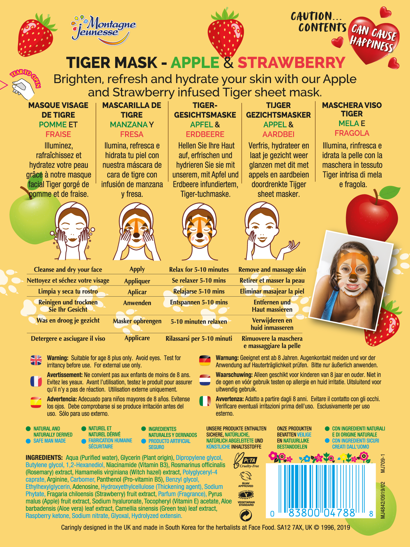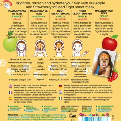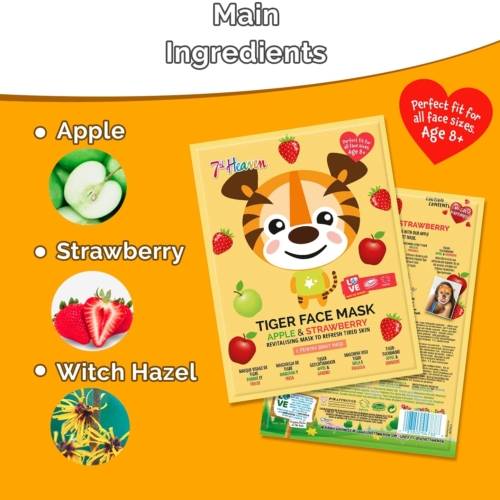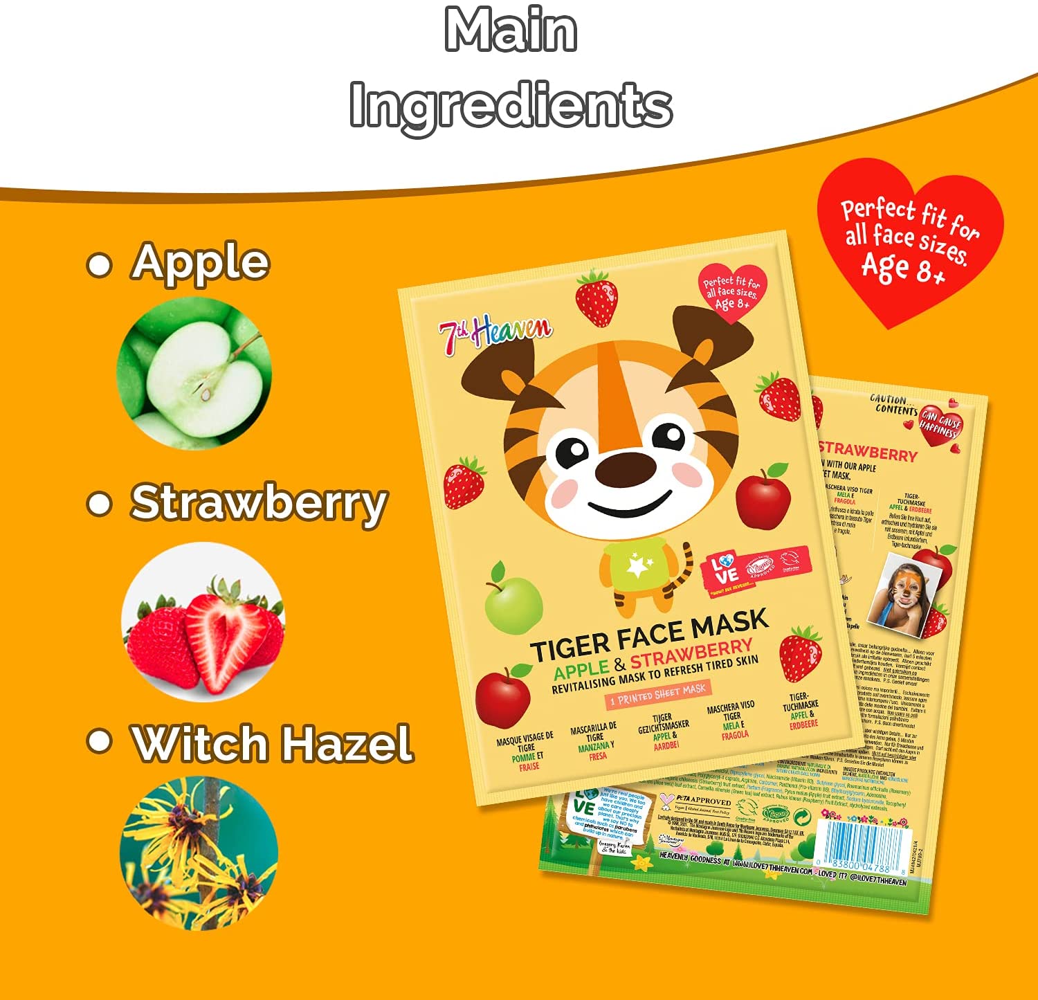 - 💚 Brighten, refresh and hydrate your skin with our Apple and Strawberry infused Tiger Sheet mask.