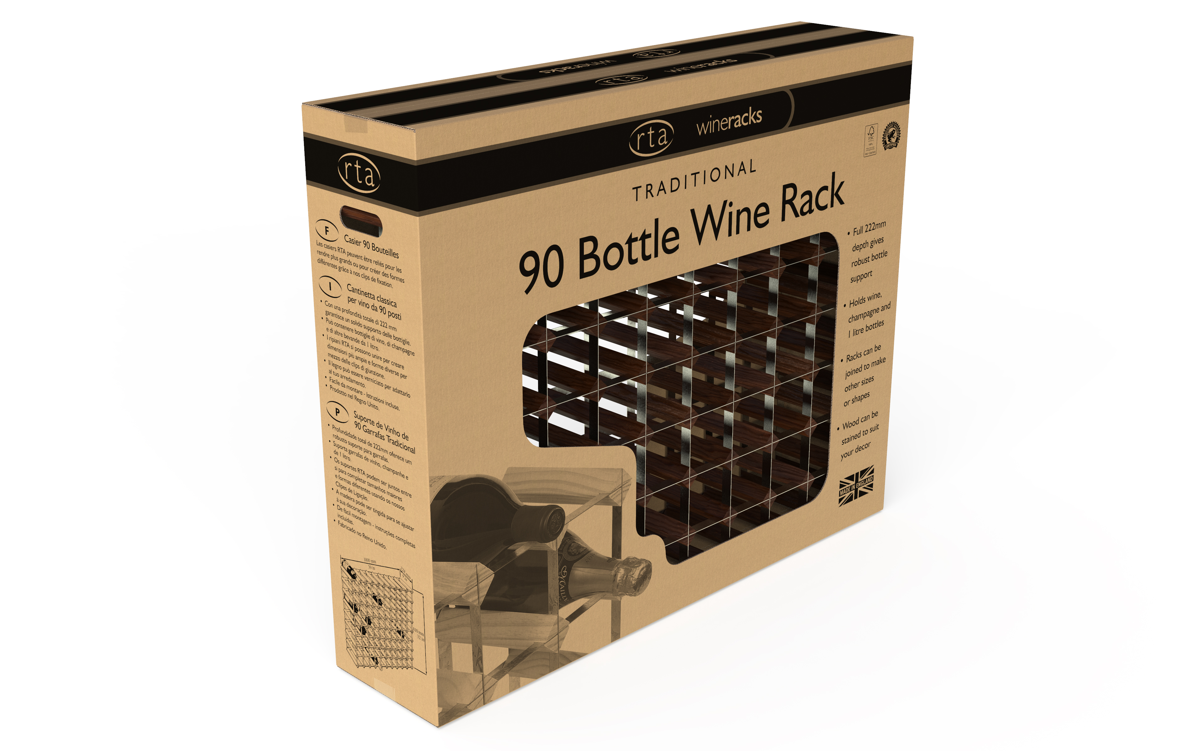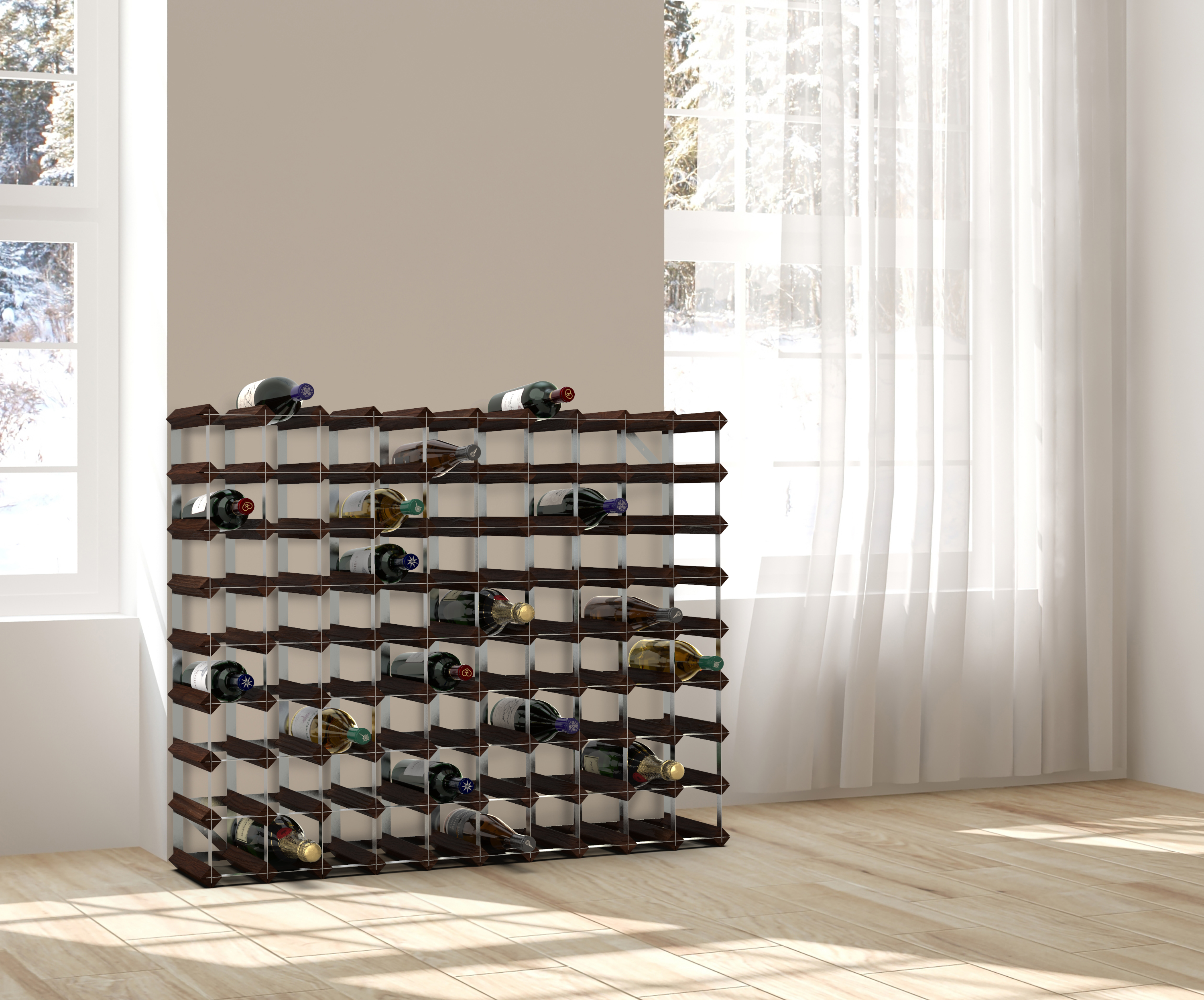This wine rack comes pre-assembled and ready to use. Using our Extend-a-Rack clip system, it is easily extended or connected to various Bother sized systems; increasing the amount of storage space.