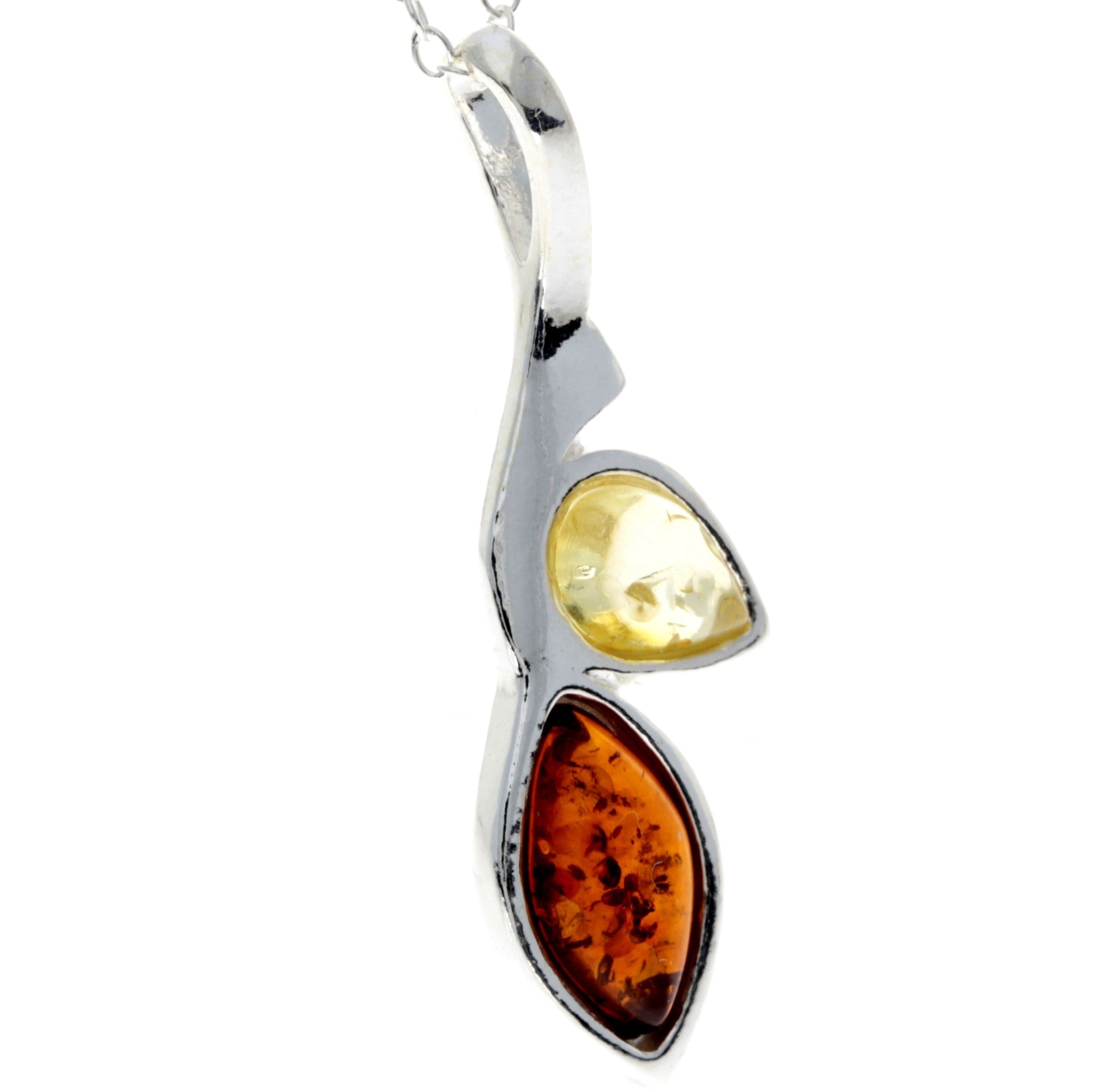 925 Sterling Silver & Baltic Amber 2 Stone Classic Pendant – GL266