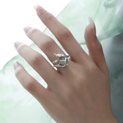 A statement open ring featuring a soaring bird and a raw-cut green fluorite stone, cast in textured 925 silver. A poetic fusion of nature, freedom, and form.
