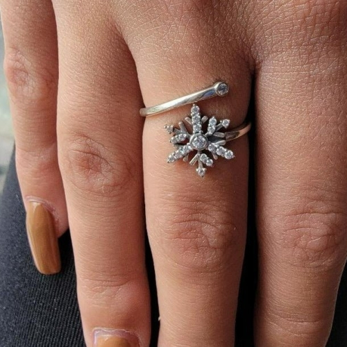 .925 Sterling Silver CZ Snowflake Adjustable Ring