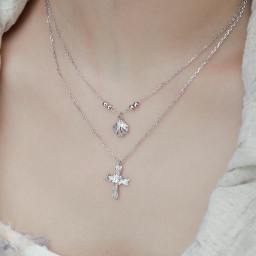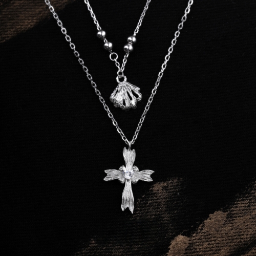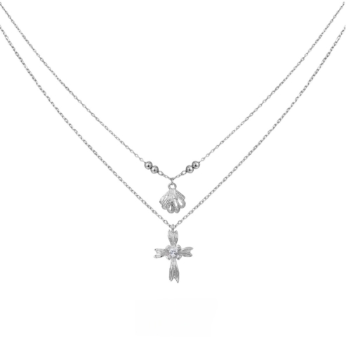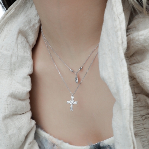 925 Sterling Silver Double Layer Cross Necklace – Minimalist Fish Tail Design
