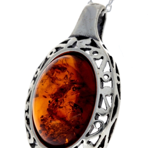 Id: AX202 Material: 925 Sterling Silver Stone: Genuine Baltic Amber Stone Dimensions: 16×12 mm Item Dimensions: 2.9 x 1.8 cm Colour: Cognac / Please note that the amber colour can vary from the one shown in the picture! Please note the chain is not included. Available chains can be found here: CHAINS