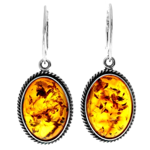 925 Sterling Silver & Genuine Baltic Amber Classic Drop Dangling Earrings – 5920