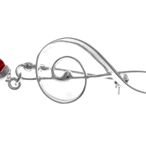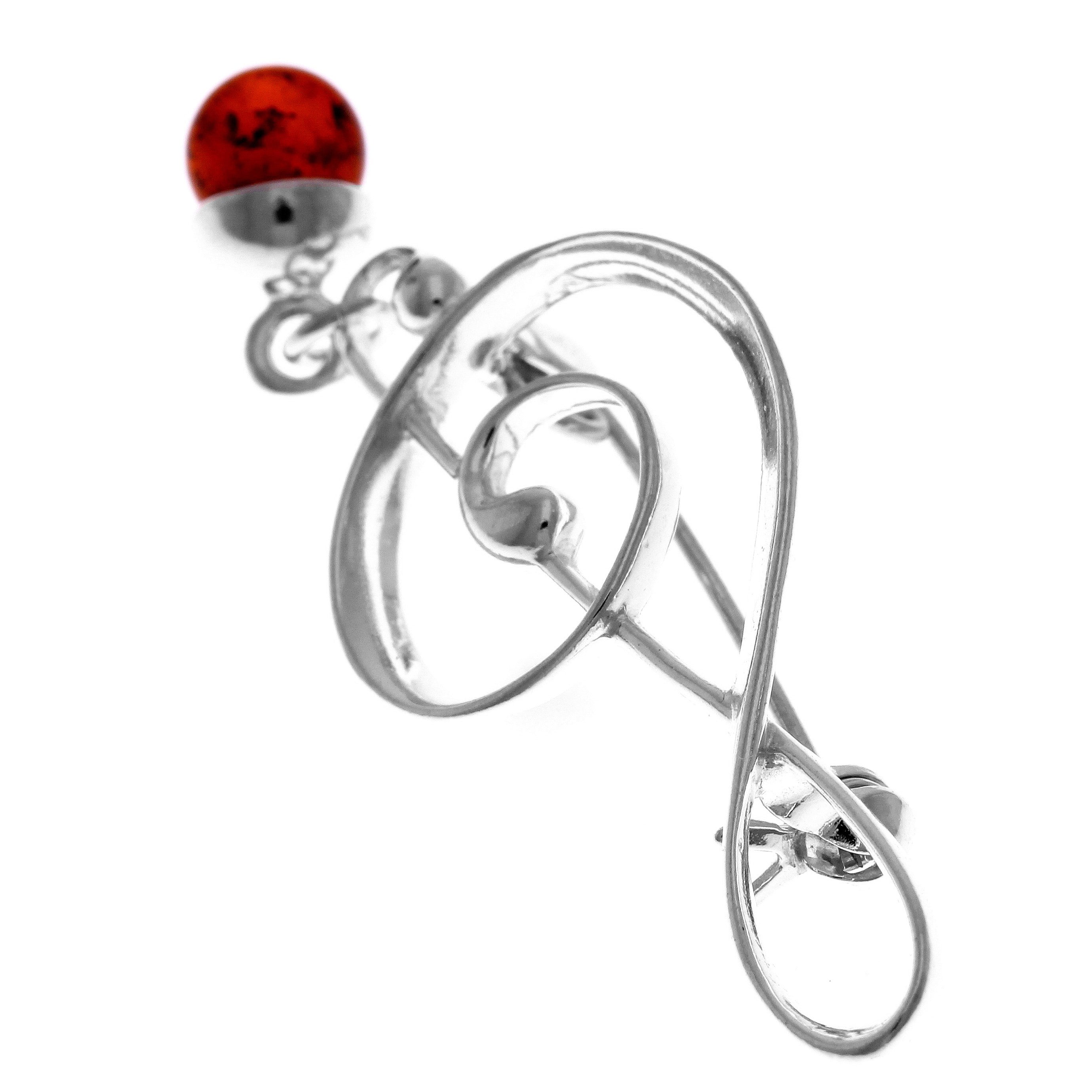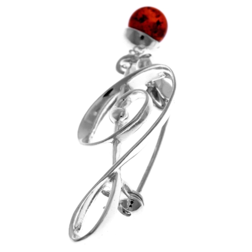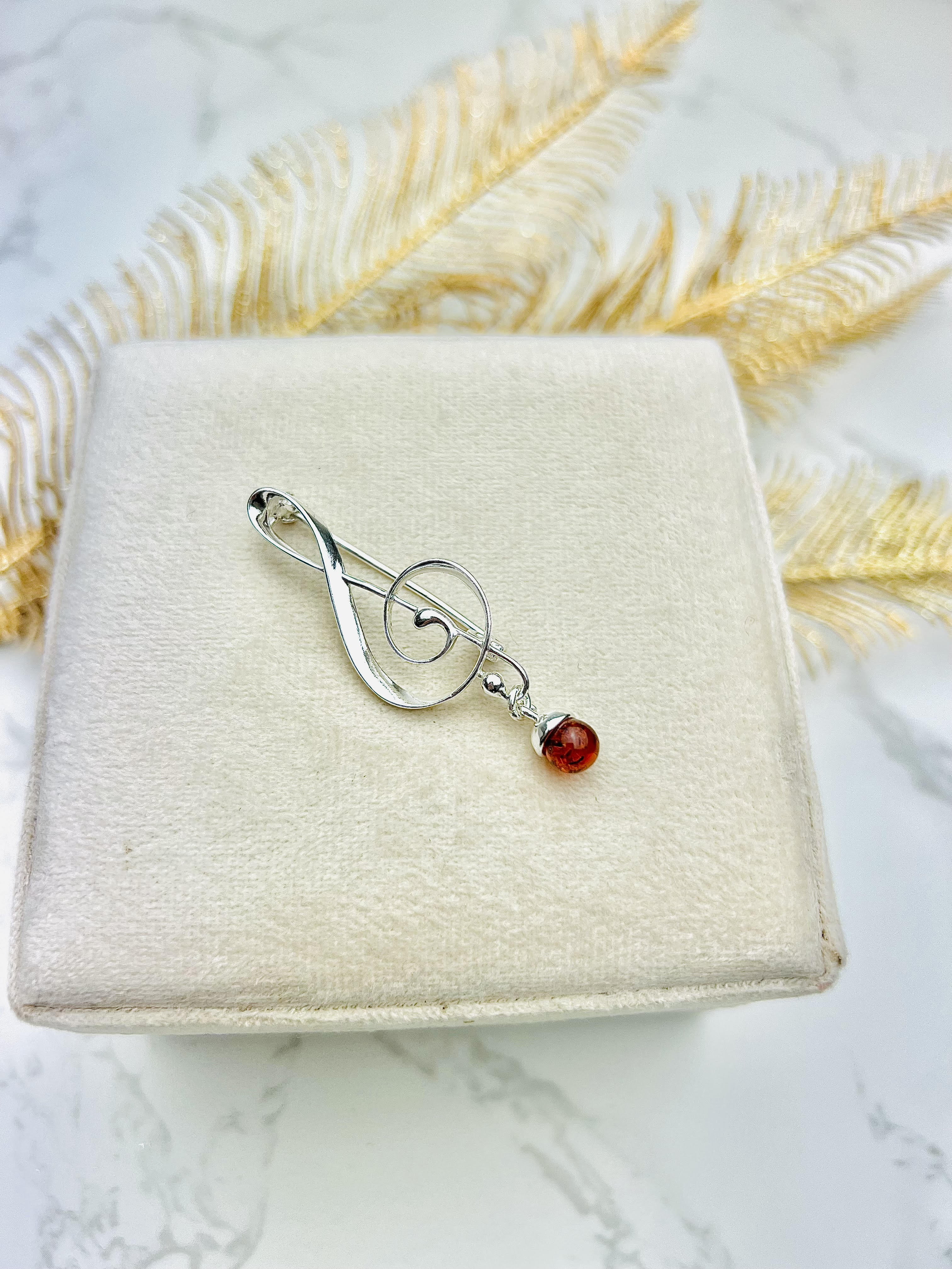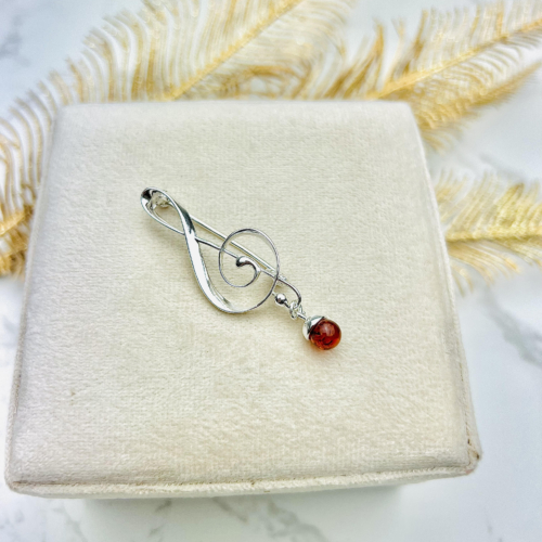 925 Sterling Silver & Genuine Baltic Amber Treble Clef Brooch – 4168