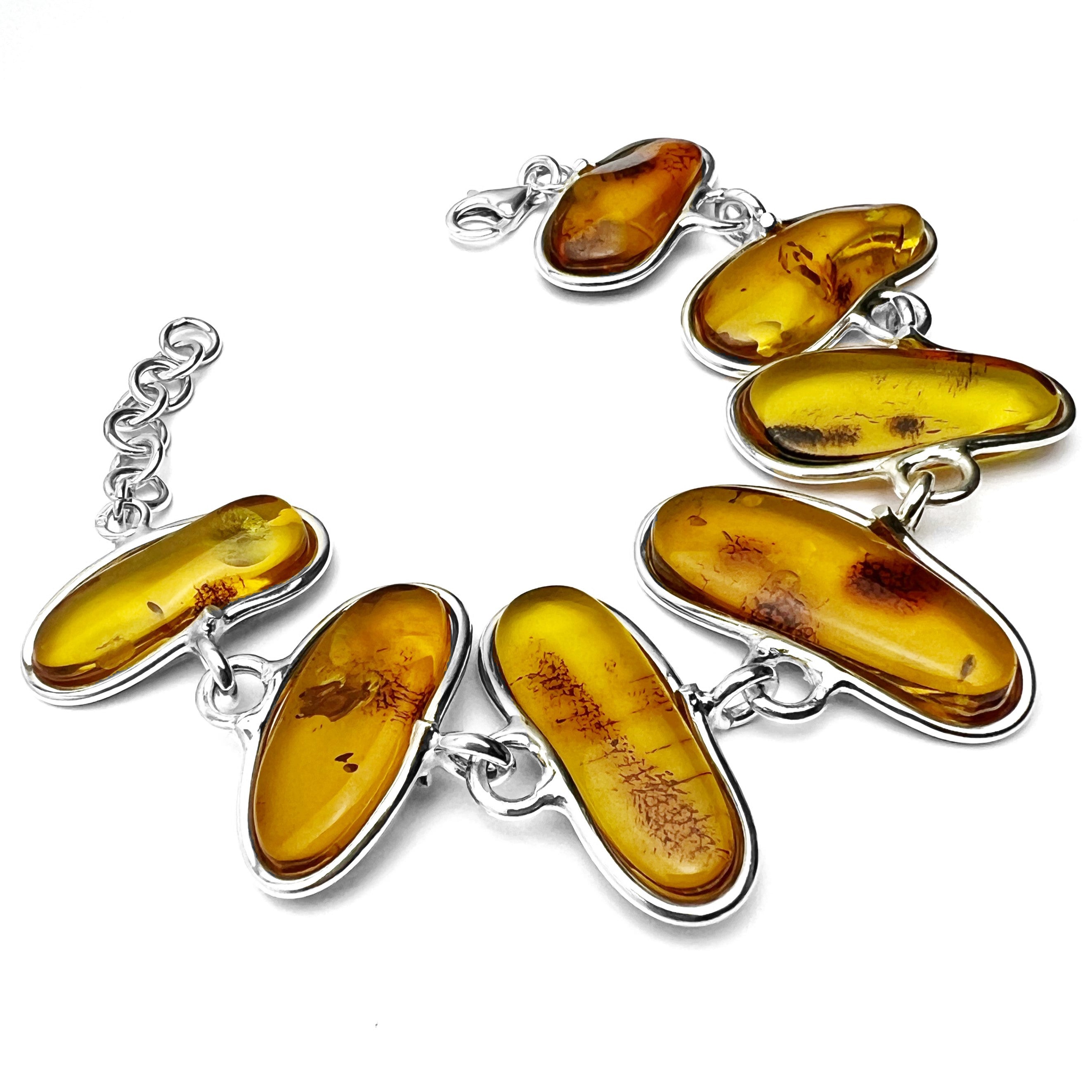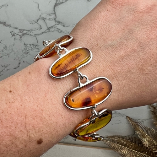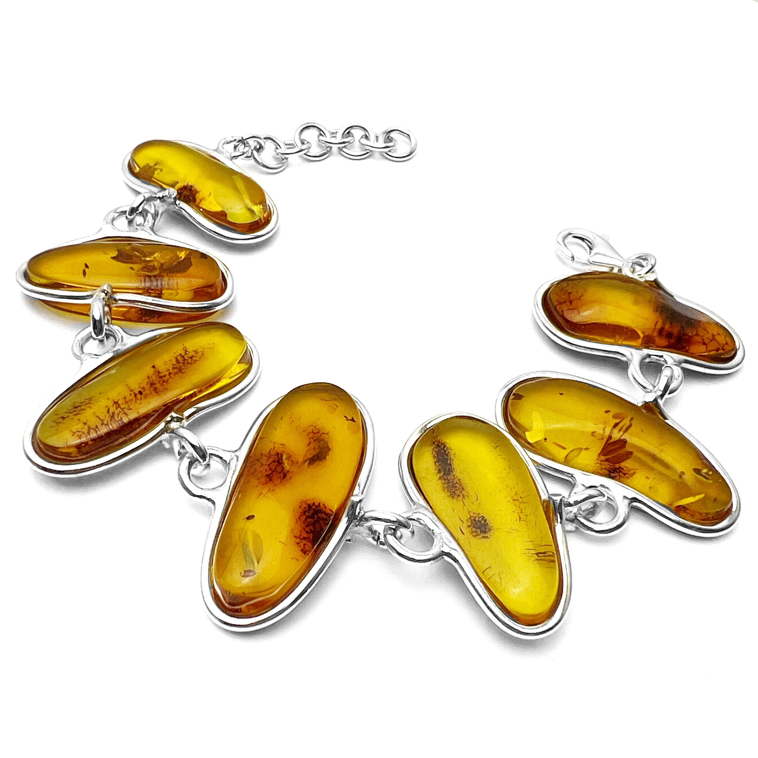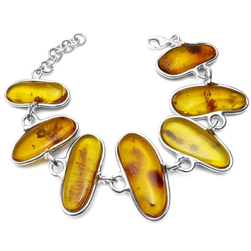Id: BT0176 Material: 925 Sterling Silver Stone: Genuine Baltic Amber Stone Dimensions: 27×12, 30×14, 28×14, 32×14, 30×12, 28×12, 27×11 mm Item length: 18 cm + 3 cm extender Colour: Cognac PLEASE NOTE THIS IS A UNIQUE ONE-OF-A-KIND PRODUCT, YOU WILL GET WHAT YOU SEE IN THE PICTURES.