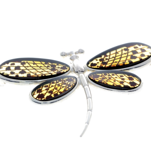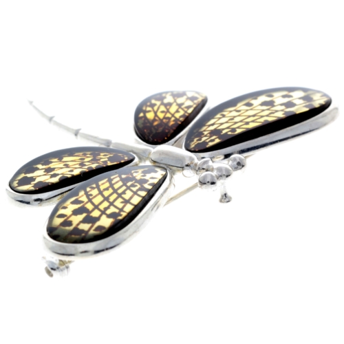 925 Sterling Silver & Genuine Engraved Baltic Amber Butterfly Brooch – AF803