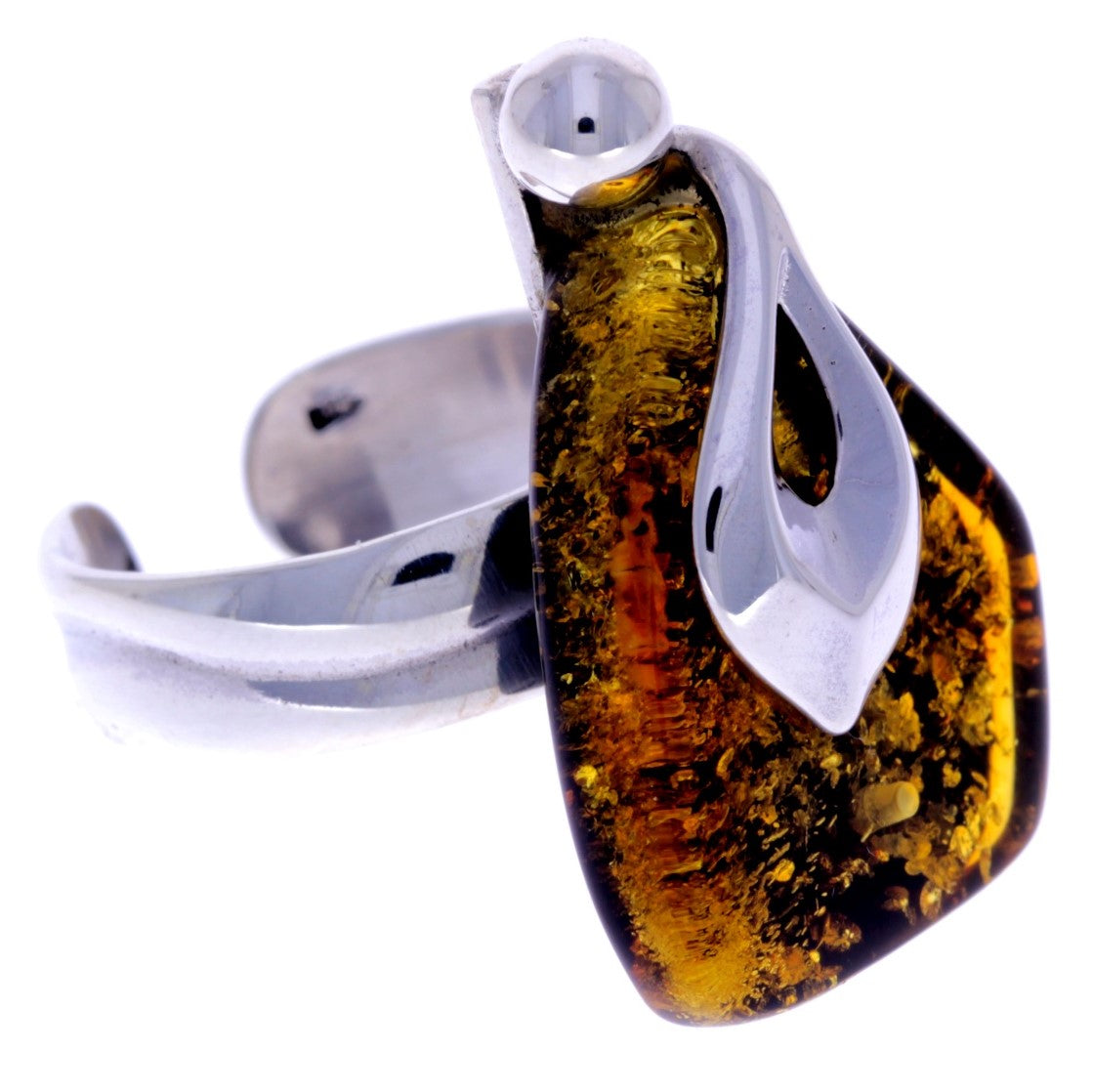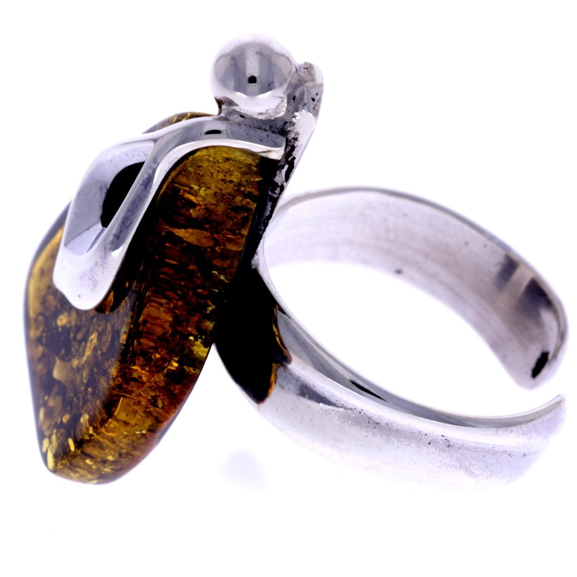 925 Sterling Silver & Genuine Green Baltic Amber Unique Ring – RG0601