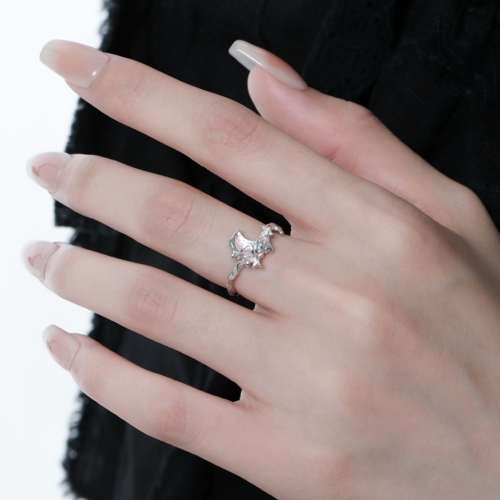 A luminous crescent moon emerges from a flowing silver band — a celestial-inspired ring for lovers of quiet light and fluid design.