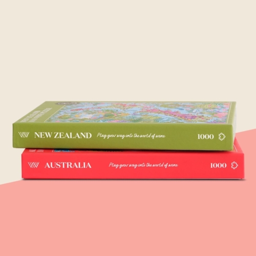 Explore two of the southern hemisphere’s most exciting wine regions with our Down Under bundle. Features Australia and New Zealand – letting you discover what makes these New World regions special. Crisp Sauvignon Blanc from Kiwi vineyards, rich Barossa Shiraz, cool climate Pinot Noir and more. The perfect set for an Aussie wine adventure, minus the 24-hour flight! Contains: Australia, New Zealand Each puzzle is 1000 pieces and comes with a full-size poster of our design and a box stand. Each completed puzzle is: 48 x 68 cm; 18.9″ x 26.8″ Each poster is: 48 x 68 cm; 18.9″ x 26.8″ Each box is: 33 x 22.7 x 3.9 cm; 12.9″ x 9.9″ x 1.5″