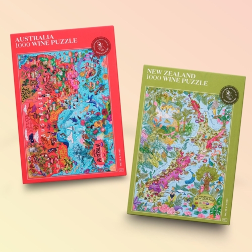 Explore two of the southern hemisphere’s most exciting wine regions with our Down Under bundle. Features Australia and New Zealand – letting you discover what makes these New World regions special. Crisp Sauvignon Blanc from Kiwi vineyards, rich Barossa Shiraz, cool climate Pinot Noir and more. The perfect set for an Aussie wine adventure, minus the 24-hour flight! Contains: Australia, New Zealand Each puzzle is 1000 pieces and comes with a full-size poster of our design and a box stand. Each completed puzzle is: 48 x 68 cm; 18.9″ x 26.8″ Each poster is: 48 x 68 cm; 18.9″ x 26.8″ Each box is: 33 x 22.7 x 3.9 cm; 12.9″ x 9.9″ x 1.5″