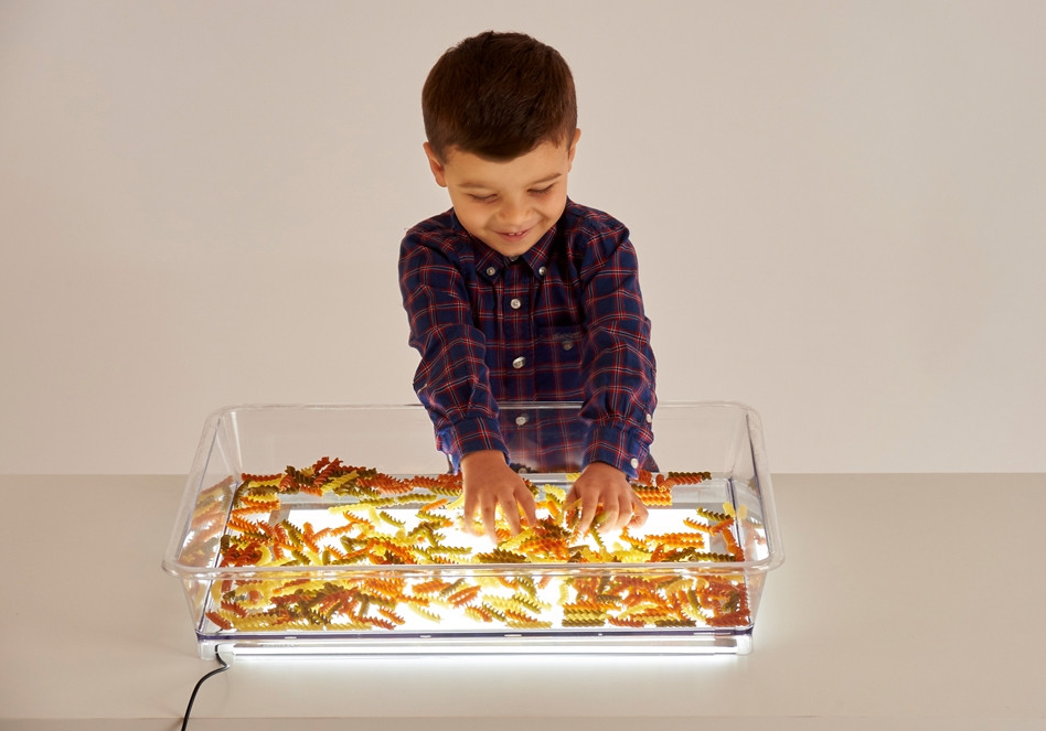 A new combination set containing our A3 Light Panel and A3 Exploration Light Tray. Our LED light panels are an essential and versatile cross-curricular resource. With an anti-trip magnetic connector and 3 light level settings they provide a cool, clean, bright illuminated background and are ideal for the investigation of light, colour and shape, or for focused group work in a wide range of subjects. Slimline and with rounded edges, the panels are tough, portable and easy to wipe clean. Simple operation with a lock function to prevent them being turned off unintentionally. The Exploration Light Tray is made from clear polycarbonate giving it incredible strength and longevity in the classroom. Its rigidity means that when filled with water it can be lifted and moved around without it flexing. Designed to fit securely over our A3 Light Panel, the tray provides a contained area for illuminating messy play activities such as pattern-making, drawing, painting, exploring food substances (tapioca, rice, semolina, lentils, jelly etc). Also brilliant for use with inks, dyes and for marbling. The internal size of the tray has been designed to easily accommodate an A3 sheet of paper. All TickiT Light Panels have an A+ energy rating and include a universal power adaptor (UK/ EU/ US/ AU compatible) with low voltage mains power supply, instructions for use in 8 languages and a TickiT Light Panel Guide. Digital versions of our light panel guide are available in English, French, German, Spanish, Italian, Polish, Swedish & Dutch. View on ISSUU.