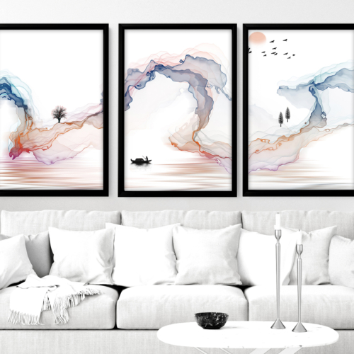 You will receive 3 non-framed Landscape Wall art prints with Japanese inspiration.