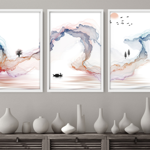 You will receive 3 non-framed Landscape Wall art prints with Japanese inspiration.