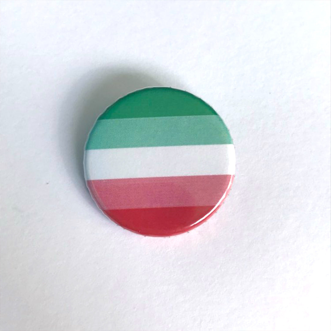 Show your pride with our 25mm abrosexual pride flag pin badge. Perfect for wearing on your favourite denim jacket, back pack, or lanyard. Details: 25mm Badge Features the Abrosexual flag in green, white, and pink