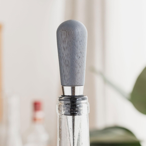 Introducing our Acacia Wine Stopper in grey grain. Crafted from fine acacia wood, this wine stopper features a smooth, turned finish that highlights the natural beauty of the wood grain.