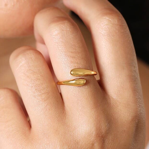 This adjustable ring is perfect for wearing alone or stacking alongside additional jewellery for a statement look.The top of the ring is disconnected, meaning it can be easily adjusted to fit your ring size. Simply pull apart both ends of the ring to widen, and gently push back together again once on the finger to tighten. DimensionsadjustableUK ring size NMade from14ct gold plated sterling silver