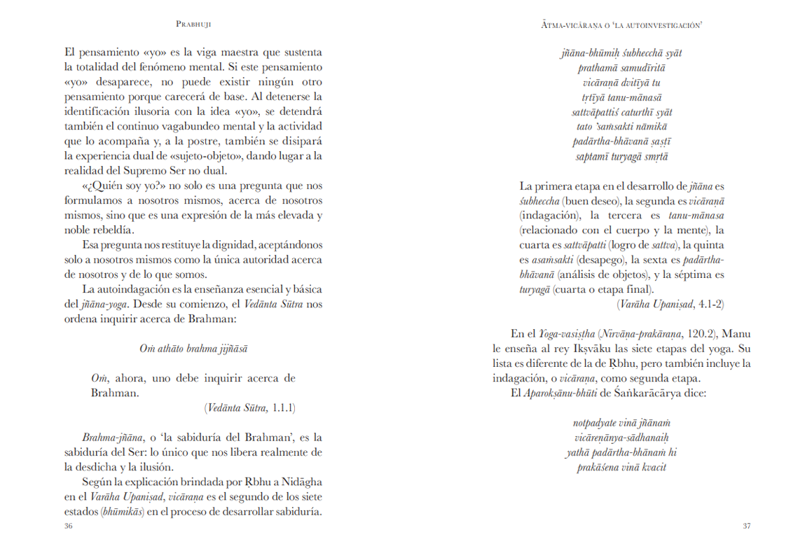En este libro, Prabhuji nos presenta los principios del vedānta para dar los primeros pasos en este sendero. Más que proporcionarnos información, explicaciones y respuestas, nos inspira a inquirir, dudar e investigar acerca de nuestra propia esencia. Nos dice que todo esfuerzo por lograr la iluminación es superfluo, porque ya somos lo que aspiramos a ser.