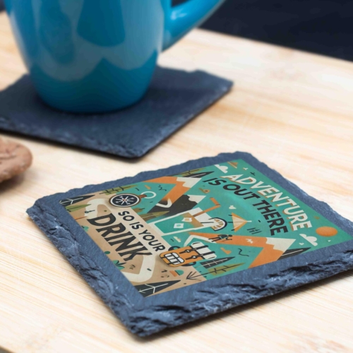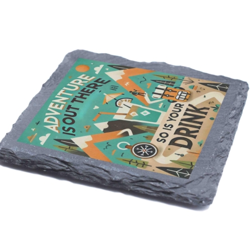 Bring a touch of adventure to your home with the “Adventure Is Out There” slate coaster. This beautifully designed piece combines a rustic mountain scene with a playful reminder to enjoy life’s journeys ? and your drink! Crafted from premium natural slate, its rugged texture and felt backing ensure both style and functionality, protecting your surfaces from spills and scratches. Whether you’re sipping coffee while planning your next hike or enjoying a cool drink after a day of exploring, this coaster sets the mood for adventure. It also makes a perfect gift for friends and family who share a passion for travel and the great outdoors. Embrace the spirit of exploration with every sip! Inspirational Design: Features a vibrant mountain and compass theme with the phrase “Adventure Is Out There, So Is Your Drink” to inspire wanderlust. Durable Natural Slate: Made from high-quality slate, offering a sturdy and stylish surface for your beverages. Protective Backing: Non-slip pads on the bottom ensure stability and prevent scratches on your furniture. Perfect for Adventurers: Ideal for travel enthusiasts, hikers, and those who love exploring the great outdoors. Great Gift Choice: A unique and thoughtful gift for birthdays, holidays, or as a keepsake for outdoor lovers.